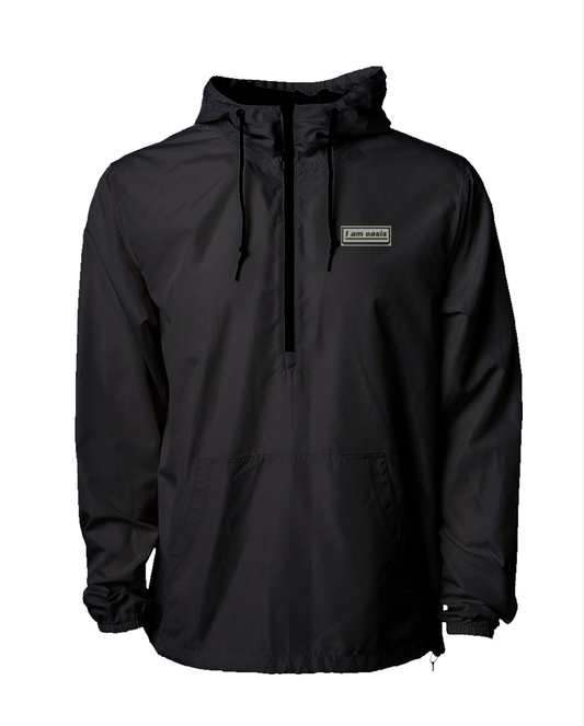 'I AM OASIS' Lightweight Pullover Waterproof Windbreaker in Black with White OG Logo